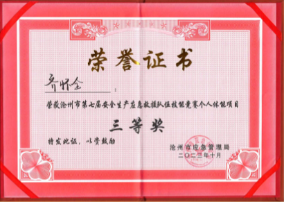 ? ?In mid-October, Cangzhou City, the seventh production safety emergency rescue team skills competition came to a successful conclusion. After intense competition, the jurisdiction of the team have achieved excellent results, the competition tested the team speed, explosive force, endurance, coordination and other comprehensive physical quality, strengthened the physical fitness of the team, enhance the basic skills of emergency rescue and self-help, the successful completion of the event, harvested the attention of many parties.