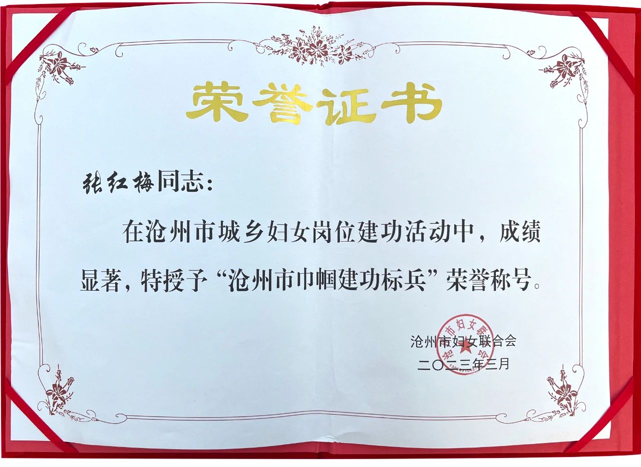 ? ? ? ?On March 8, Cangzhou Women's Federation commended the advanced collective and advanced individual who emerged in the "Cangzhou urban and rural women's post construction activity". Haijiang Group financial Director Comrade Zhang Hongmei forge ahead, pioneering and innovative, was awarded the "Cangzhou City women's achievements pacesetter" honorary title.