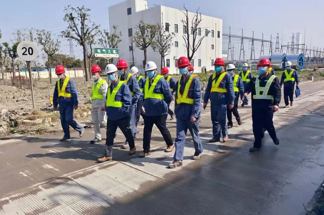On March 15, 2022, Hu Jiandong, Chairman of Shanghai Electric Power Co., Ltd. and other managers visited the site of the intelligent demolition of Minhang Power Plant project of Haijiang Group to inspect the overall progress of the project. The person in charge of the project department of the intelligent demolition Minhang power plant of Haijiang Group accompanied the visit.