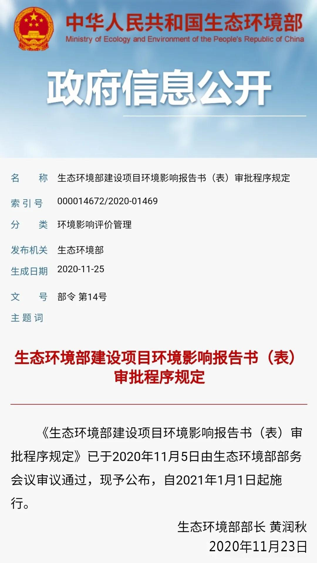 Ministry of Ecology and Environment: "Provisions on Approval Procedures for Environmental Impact Reports (Forms) of Construction Projects of the Ministry of Ecology and Environment" officially released