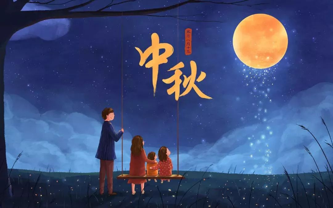 We celebrate the Mid-Autumn Festival with the bright moon in the sky