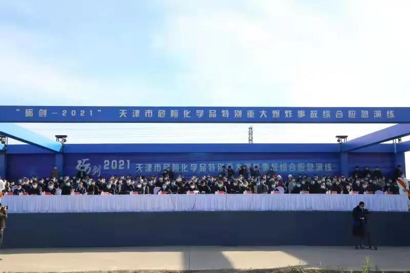 10月19日,“礪劍—2021”天津市特別重大危險化學(xué)品事故綜合應(yīng)急演練活動在天津濱海新區(qū)舉行。交通運輸部、應(yīng)急管理部有關(guān)司局負責(zé)同志、北京市應(yīng)急管理局、河北省應(yīng)急管理廳負責(zé)同志實地觀摩演練,天津市人民政府副市長孫文魁同志出席演練活動并講話。