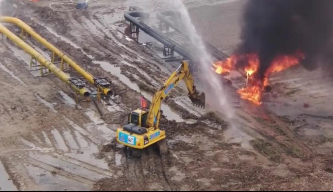 熊熊大火依然在燃燒,這是一場與時間的賽跑,一場與生命的較量。應(yīng)急搶險救援隊伍奮戰(zhàn)在一線,在人員無法涉及的危險區(qū)域里,海江集團爭分奪秒第一時間調(diào)集機械設(shè)備進入現(xiàn)場配合救援行動。運用5G遠程操控系統(tǒng),在廣州智能指揮中心控制無人智能機械,對事故地點進行圍堰作業(yè),阻隔火勢蔓延,防止?;妨魅牒恿鳌⑾滤赖葏^(qū)域,避免次生災(zāi)害的發(fā)生。