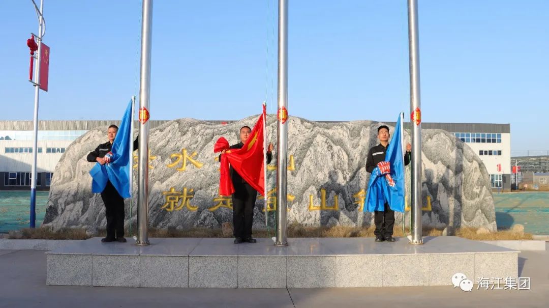 ? ? “升國旗,奏國歌!”1月28日上午8點整,海江集團隆重舉行升旗儀式。在雄壯嘹亮的國歌聲中,伴隨著鮮艷的五星紅旗冉冉升起,全體員工神情莊重地向國旗行注目禮。