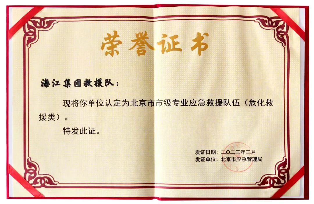 ? ? 近日,北京市應(yīng)急管理局授予海江集團(tuán)救援隊(duì)為“北京市市級(jí)專(zhuān)業(yè)應(yīng)急救援隊(duì)”,這是對(duì)海江集團(tuán)應(yīng)急救援力量莫大的肯定。海江集團(tuán)救援隊(duì)也將再接再厲,持續(xù)把建設(shè)專(zhuān)業(yè)應(yīng)急救援隊(duì)伍作為一項(xiàng)重要工作,扎實(shí)推進(jìn)專(zhuān)業(yè)應(yīng)急救援隊(duì)伍建設(shè)。