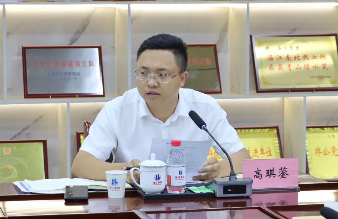 ? ? ? ? 年半而思擂進鼓,砥礪奮進下半年。為謀劃公司發(fā)展戰(zhàn)略規(guī)劃,促進各部門的業(yè)務(wù)發(fā)展,總結(jié)2023年上半年取得的成績及開展下半年工作規(guī)劃部署,海江集團于2023年7月18日召開2023年中經(jīng)濟運行分析總結(jié)會。會議由海江集團黨支部書記高琪鎣主持,集團領(lǐng)導(dǎo)劉海江、褚龍及各部門負責(zé)人參加會議。各部門負責(zé)人在會議中進行上半年工作匯報,劉海江董事長在會議中做出下半年重要工作指示。