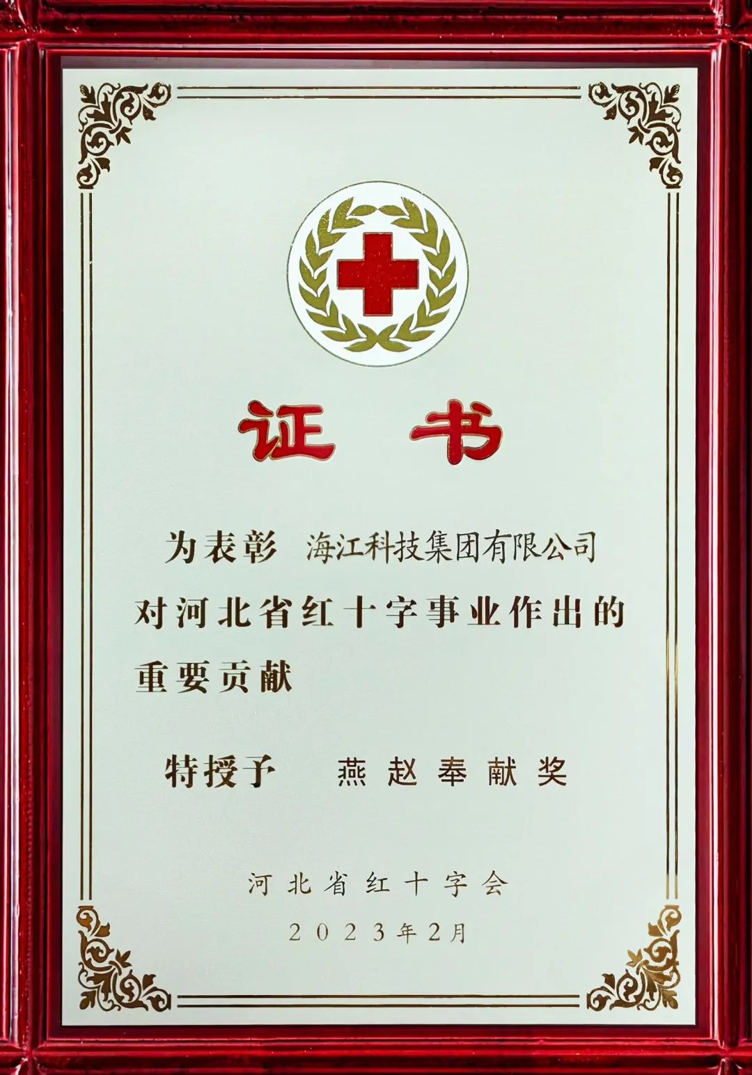 ? ? ? ? “燕趙奉獻獎”是河北省紅十字會為表彰2022年度對紅十字會人道公益事業(yè)做出突出貢獻的捐贈者而設(shè)立的榮譽。