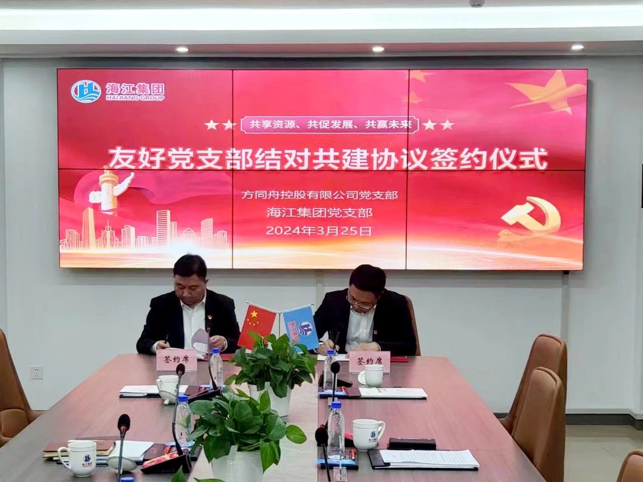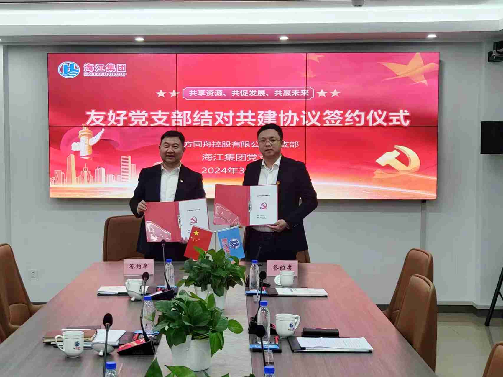 ? ? ? 同時海江集團重視黨建引領(lǐng)作用,黨建共建是實現(xiàn)基層黨組織工作互動、資源共享、優(yōu)勢互補的重要手段,海江集團希望以此次友好黨支部結(jié)對共建為契機,與方同舟控股搭建起良好的互動交流平臺,推動雙方黨建與業(yè)務(wù)深度融合互促,共同探索黨建工作新思路、新合作。