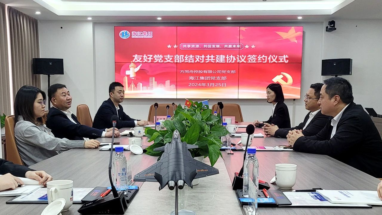 ? ?2024年3月25日,海江集團黨支部與方同舟控股有限公司黨支部舉行結(jié)對共建協(xié)議簽約儀式隆重舉行。方同舟控股行政總裁、亦莊經(jīng)開區(qū)榮華港黨委委員、武安市駐北京流動黨委常務(wù)副書記李雪坡,方同舟控股行政總監(jiān)、專職黨建管理員張帆出席簽約儀式,海江集團常務(wù)副總、黨支部書記高琪鎣熱情接待并陪同考察,雙方就未來黨建共建、共謀發(fā)展等議題進行友好座談。