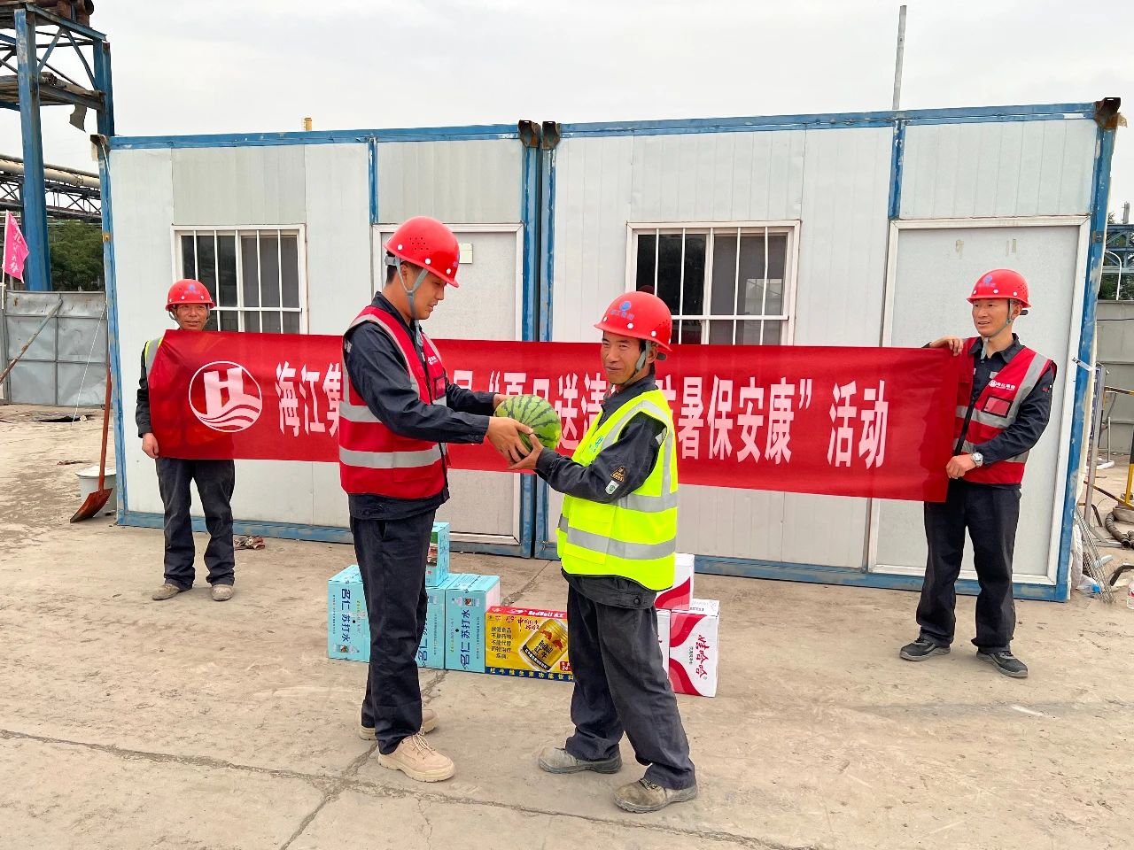 ? ? ? ?七月流火,烈日灼灼,氣溫極速攀升。近日,海江集團工會奔赴甘肅蘭州造粒塔項目、湖北枝江化肥廠項目、廣東黃埔電廠二期項目、廣東惠州高碳醇項目等多個項目組以及海江集團北京總部、海江集團上海應(yīng)急中心與滄州循環(huán)經(jīng)濟產(chǎn)業(yè)園開展“夏日送清涼 防暑保安康”防暑慰問活動,看各地望崗位一線員工,以實際行動為一線員工送去夏日清涼與集團大家庭的關(guān)懷。