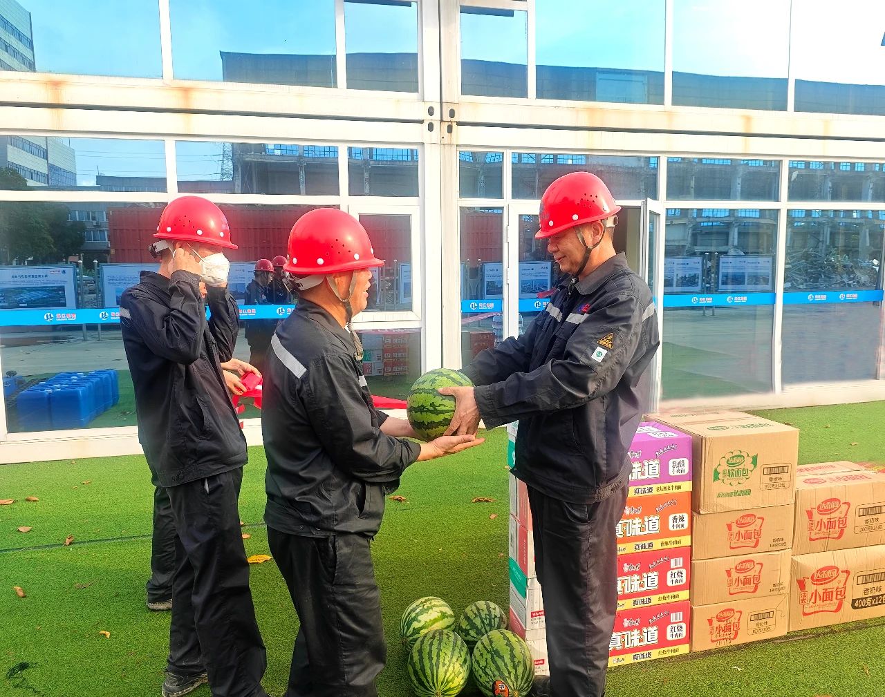 ? ? ? ?集團工會此次深入項目一線,為員工帶去防暑物資與深切慰問。工會代表將慰問品一一遞到員工手中,感謝他們?yōu)榧瘓F各項事業(yè)作出的貢獻(xiàn),對大家高度的敬業(yè)精神與專注度給予了高度肯定。