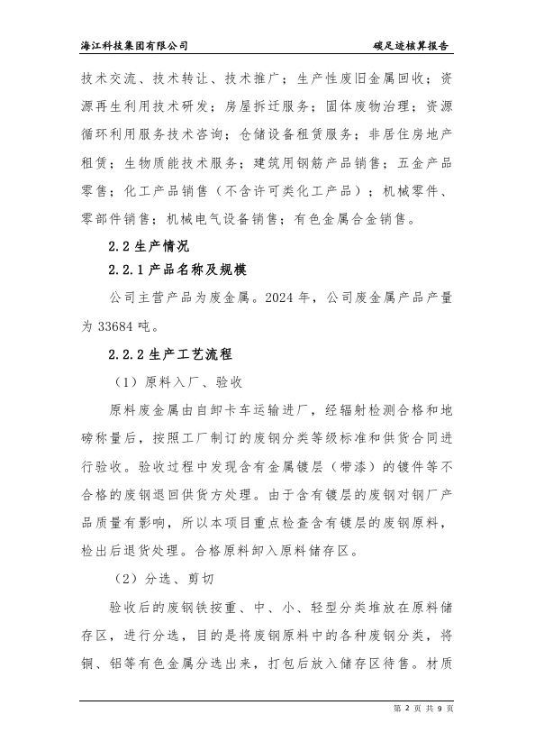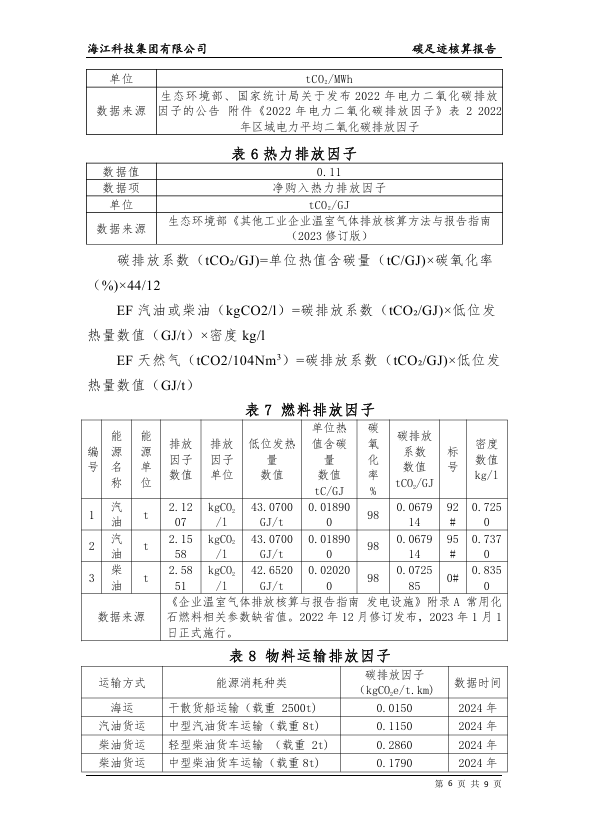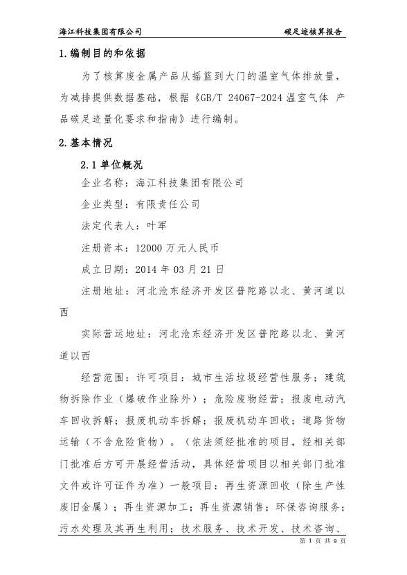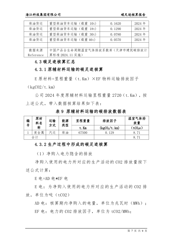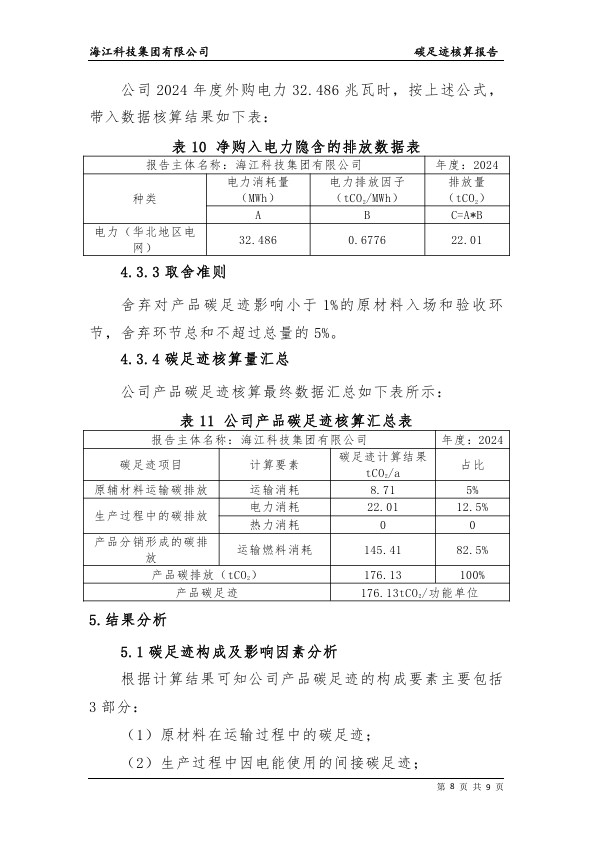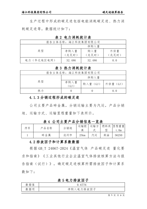 海江科技集團(tuán)有限公司2024年度碳足跡核算報(bào)告