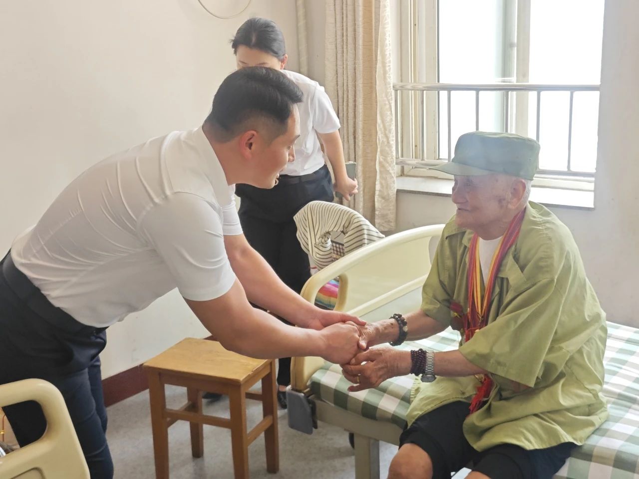 2025年8月1日,在中國人民解放軍建軍98周年之際,海江集團副董事長、總經(jīng)理褚龍率隊聯(lián)合退役軍人事務(wù)局副局長馮丹、科長劉保國專程赴滄州市區(qū)及下轄縣區(qū)走訪慰問抗戰(zhàn)老兵與退伍軍人。在血火歲月鐫刻的精神豐碑前,將尊崇英雄的集體共識轉(zhuǎn)化為可觸可感的關(guān)懷,以實際行動踐行民營企業(yè)擁軍優(yōu)屬的初心使命。