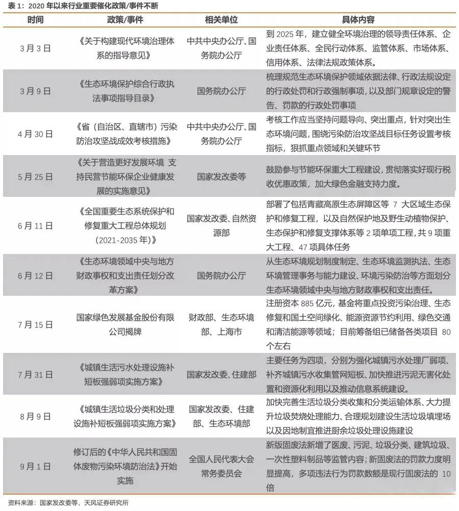 環(huán)保行業(yè)政策周期已開啟,2020年以來政策催化不斷。3月3日,中共中央辦公廳、國務(wù)院辦公廳印發(fā)了《關(guān)于構(gòu)建現(xiàn)代環(huán)境治理體系的指導(dǎo)意見》。文件提出到2025年建成導(dǎo)向清晰、決策科學(xué)、執(zhí)行有力、激勵有效、多元化參與、良性互動的環(huán)境治理體系。自三大污染防治行動方案之后,環(huán)保行業(yè)已經(jīng)經(jīng)歷很長時間的政策“空窗期”,這一指導(dǎo)意見是今后5年環(huán)保體系化建設(shè)的綱領(lǐng)性文件,后續(xù)配套文件將逐步落地,一定程度上標(biāo)志著新一輪環(huán)保政策周期啟動。在這一綱領(lǐng)性文件引領(lǐng)下,2020年以來環(huán)保行業(yè)陸續(xù)迎來環(huán)保大基金、垃圾分類處理與生活污水補(bǔ)短板方案、新固廢法等等強(qiáng)政策催化,行業(yè)景氣度向上趨勢確立。