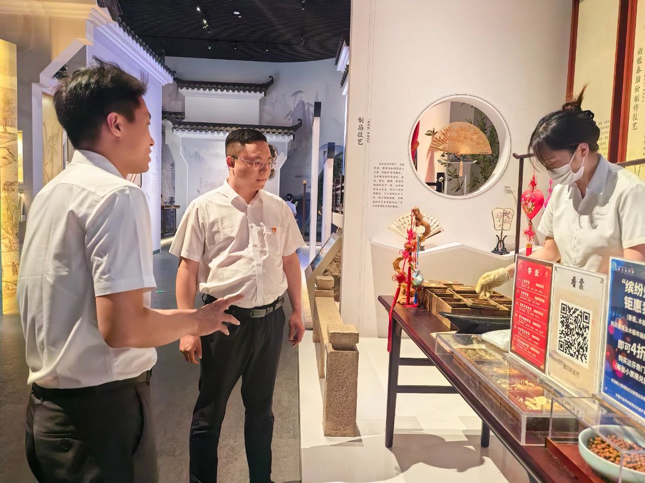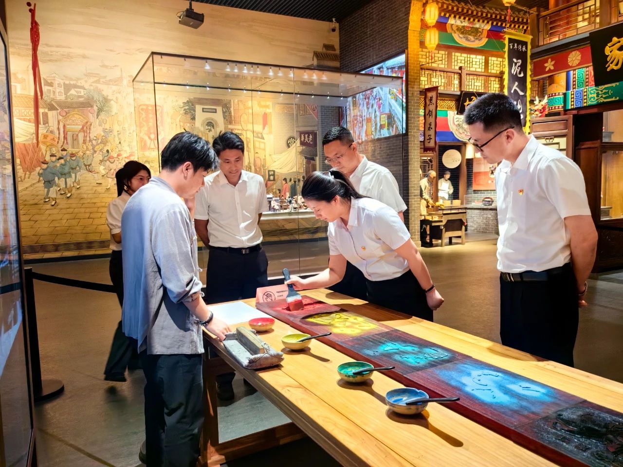 ? ? 簽約座談儀式結(jié)束后,為進一步增進交流、感悟共建的文化根基,海江集團黨總支書記高琪鎣一行參觀非遺館精品展陳,館內(nèi)陳列的精湛傳統(tǒng)工藝、豐富的非物質(zhì)文化遺產(chǎn)項目,這種“看得見、摸得著、能參與”的文化體驗,讓黨建共建的內(nèi)涵更加生動和豐富,也為雙方未來在文化領(lǐng)域,特別是大運河文化生態(tài)保護與創(chuàng)新利用方面的合作,注入了更深的認同感和更清晰的思路。