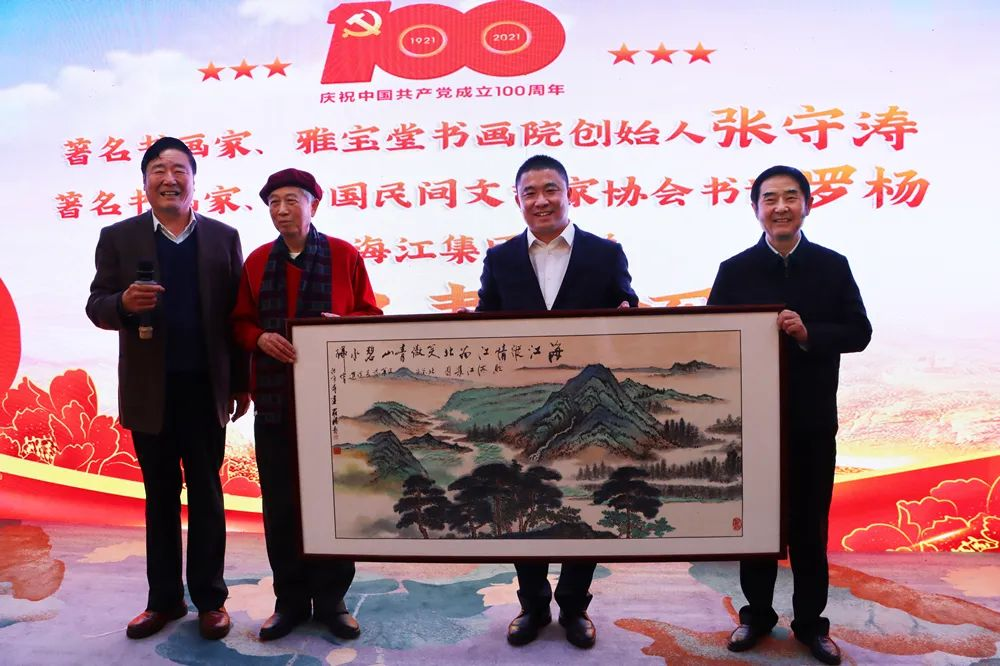 百年輝煌映日月,百家書畫譜新篇。2022年1月16日,建黨百年百家書畫邀請展暨北京市企業(yè)發(fā)展促進會第二屆理事會第三次會議在北京維也納國際酒店隆重開幕。此次展覽展出了包括中國國畫家協(xié)會主席雷正民、原北京市副市長孫安民、中國國際書畫藝術(shù)促進會會長張守濤、中央文史館特約研究員羅楊等的作品100多幅,涵蓋了中國畫、油畫、書法、篆刻、剪紙等多種藝術(shù)形式,回顧和展示了中國共產(chǎn)黨100年來走過的光輝歷程,熱情謳歌了建黨以來所取得的光輝業(yè)績和偉大成就。海江集團董事長劉海江、黨支部書記高琪鎣、總裁褚龍、副總李國棟等應(yīng)邀出席。